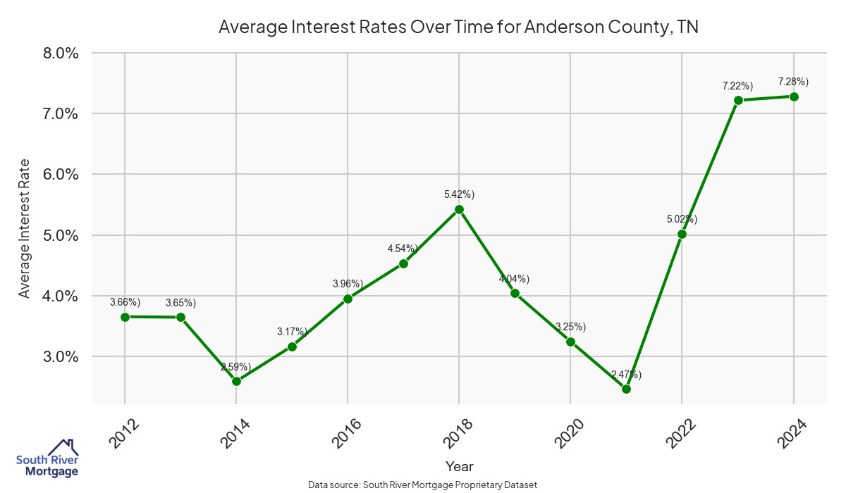 There are approximately 73 active reverse mortgage loans in Anderson County. The average interest rate in Anderson County is 7.3% for reverse mortgages. The average maximum claim amount (the lesser of the appraisal or lending limit), among reverse mortgage borrowers, in Anderson County was $329,444.44 in 2024.
