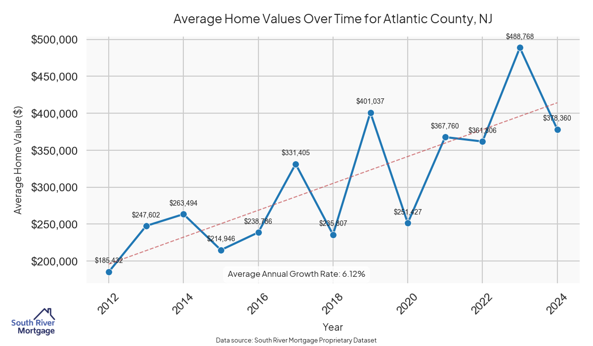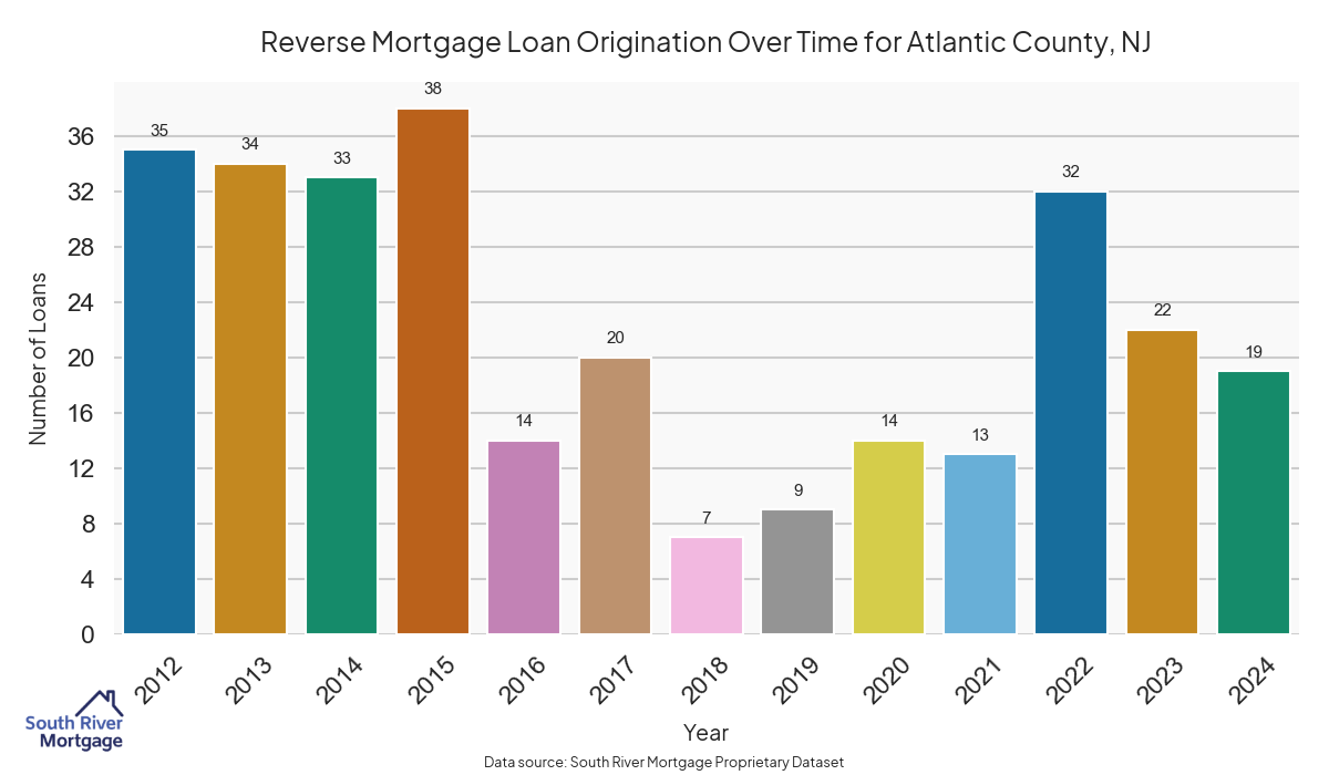 In 2024, there were 271 active reverse mortgage loans in Atlantic County, New Jersey. The average home value in Atlantic County is $500,946.14.