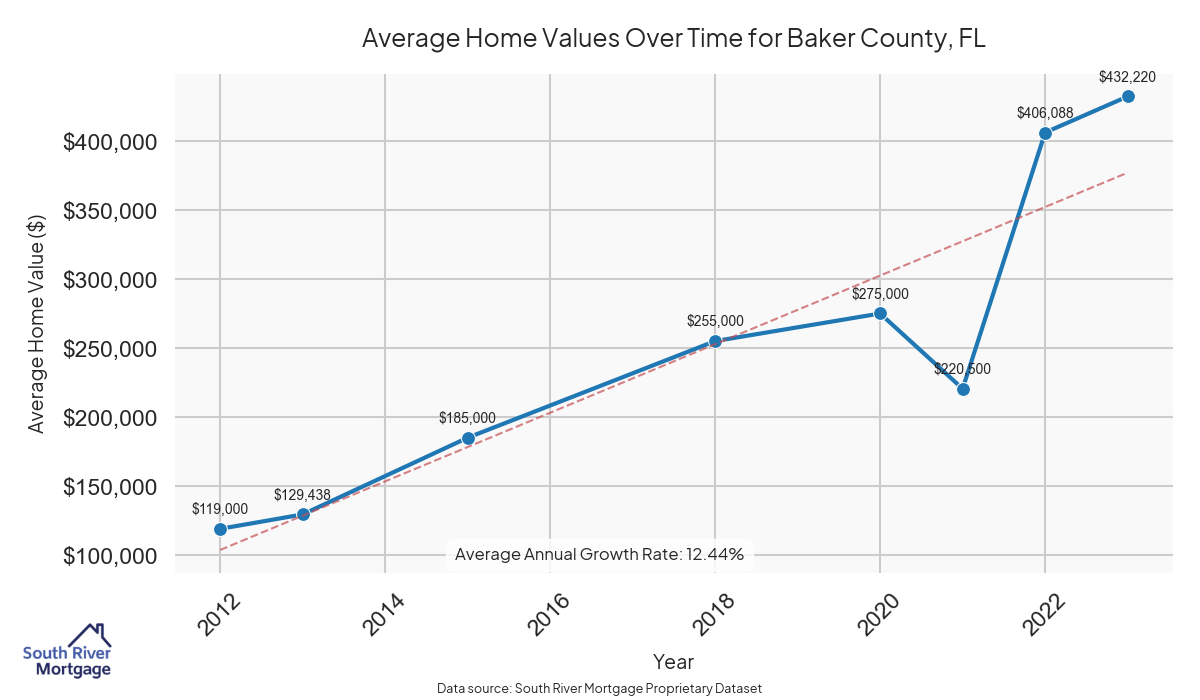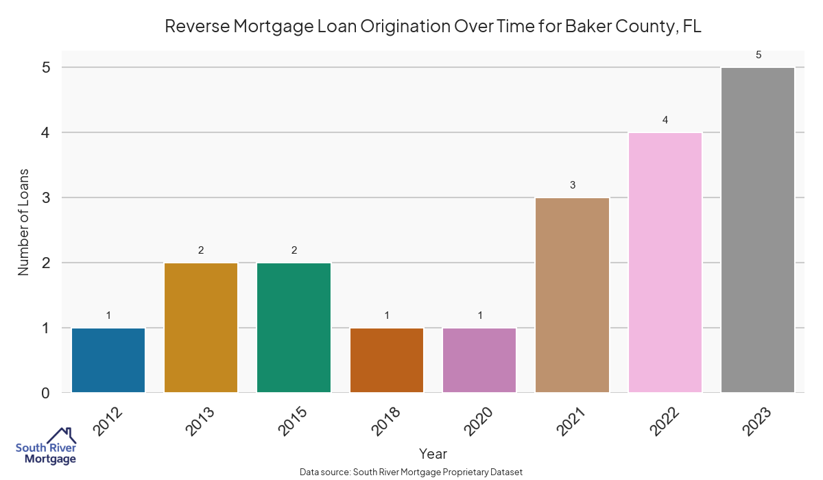 In 2024, there were 17 active reverse mortgage loans in Baker County, Florida. The average home value in Baker County is $397,163.24.
