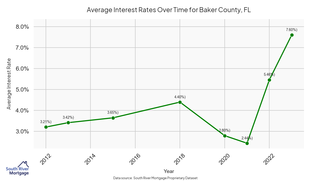 There are approximately 17 active reverse mortgage loans in Baker County. The average interest rate in Baker County is 7.6% for reverse mortgages. The average maximum claim amount (the lesser of the appraisal or lending limit), among reverse mortgage borrowers, in Baker County was $396,666.67 in 2024.