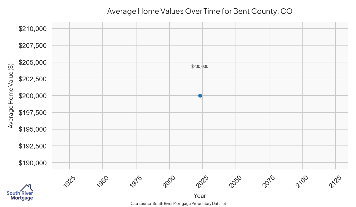 In 2024, there were 1 active reverse mortgage loans in Bent County, Colorado. The average home value in Bent County is $280,206.00.