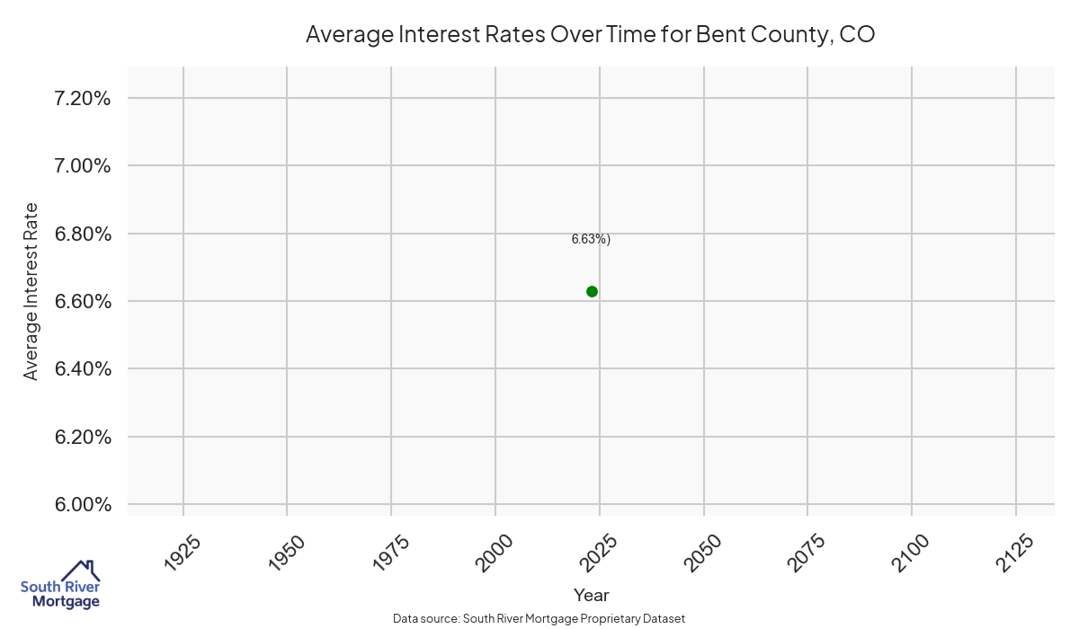 There are approximately 1 active reverse mortgage loans in Bent County. The average interest rate in Bent County is 6.63% for reverse mortgages. The average maximum claim amount (the lesser of the appraisal or lending limit), among reverse mortgage borrowers, in Bent County was $205,000.00 in 2024.