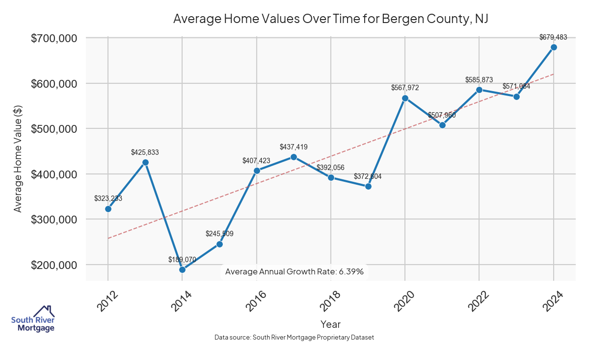 In 2024, there were 694 active reverse mortgage loans in Bergen County, New Jersey. The average home value in Bergen County is $809,357.63.