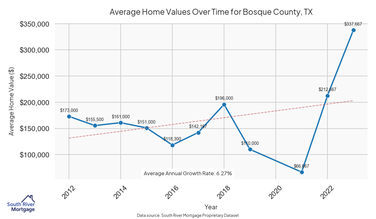 Bosque County is located in the state of Texas and is home to a population known for its friendly and tight-knit community. The area is characterized by its rolling hills and lush forests, making it a picturesque location for nature lovers. Known for its rich history, Bosque County boasts several historical sites, including the Clifton Lutheran College Historic District and the Meridian State Park. With an average home value of $236,467.37 and an average property tax of $1,079.31, Bosque County offers affordable housing options for residents. Seniors looking to utilize their home equity may consider exploring reverse mortgages in Bosque County. With an average interest rate of 5.12%, seniors can tap into their home’s value to supplement their retirement income or cover unexpected expenses. Reverse mortgages can provide financial flexibility for seniors looking to age in place in the charming community of Bosque County.