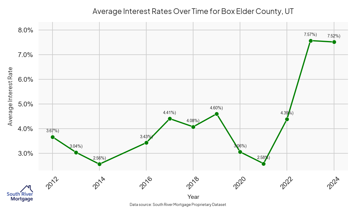 There are approximately 127 active reverse mortgage loans in Box Elder County. The average interest rate in Box Elder County is 7.53% for reverse mortgages. The average maximum claim amount (the lesser of the appraisal or lending limit), among reverse mortgage borrowers, in Box Elder County was $486,290.32 in 2024.