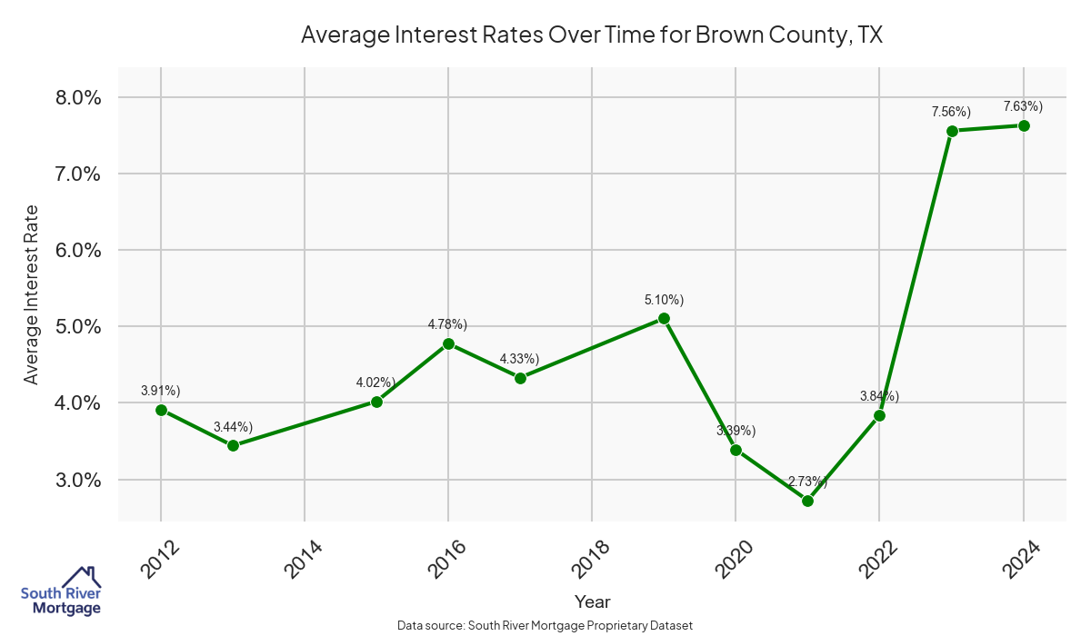There are approximately 39 active reverse mortgage loans in Brown County. The average interest rate in Brown County is 7.45% for reverse mortgages. The average maximum claim amount (the lesser of the appraisal or lending limit), among reverse mortgage borrowers, in Brown County was $461,666.67 in 2024.