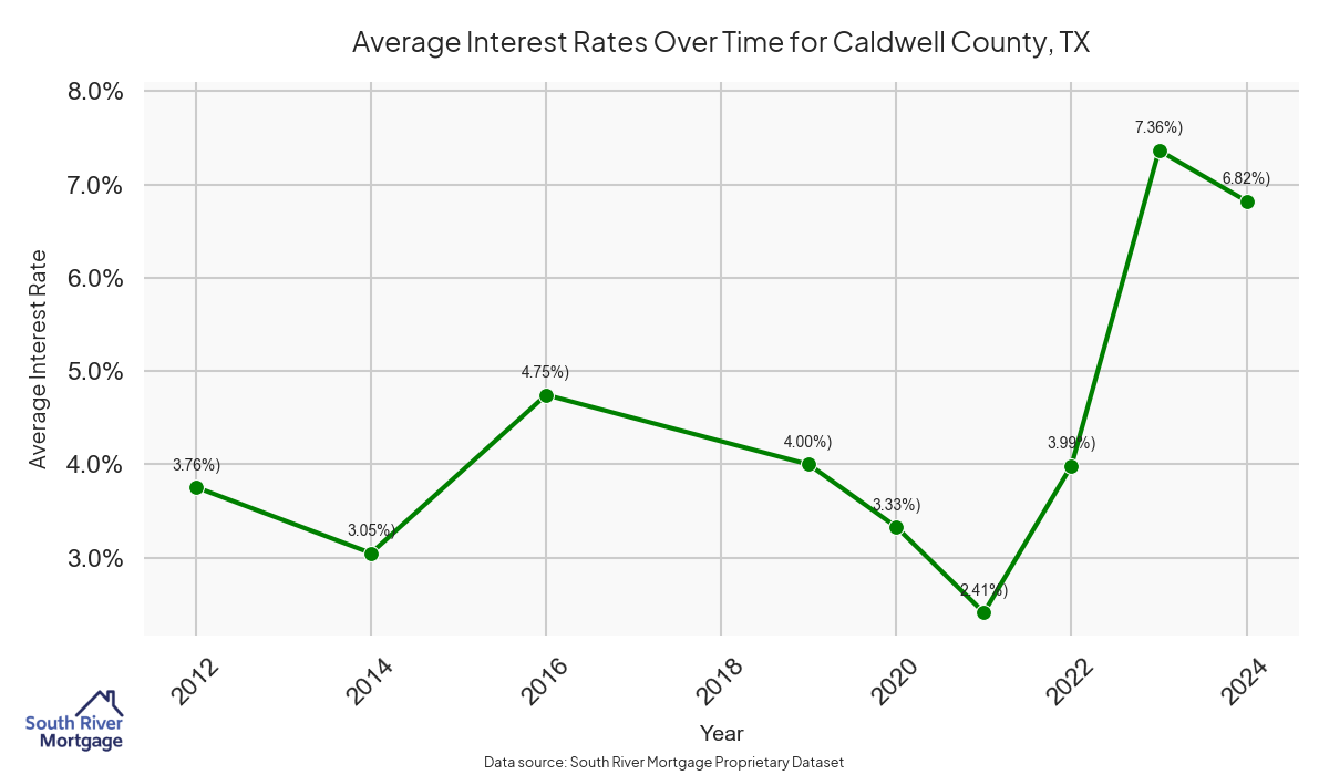 There are approximately 20 active reverse mortgage loans in Caldwell County. The average interest rate in Caldwell County is 7.51% for reverse mortgages. The average maximum claim amount (the lesser of the appraisal or lending limit), among reverse mortgage borrowers, in Caldwell County was $333,000.00 in 2024.