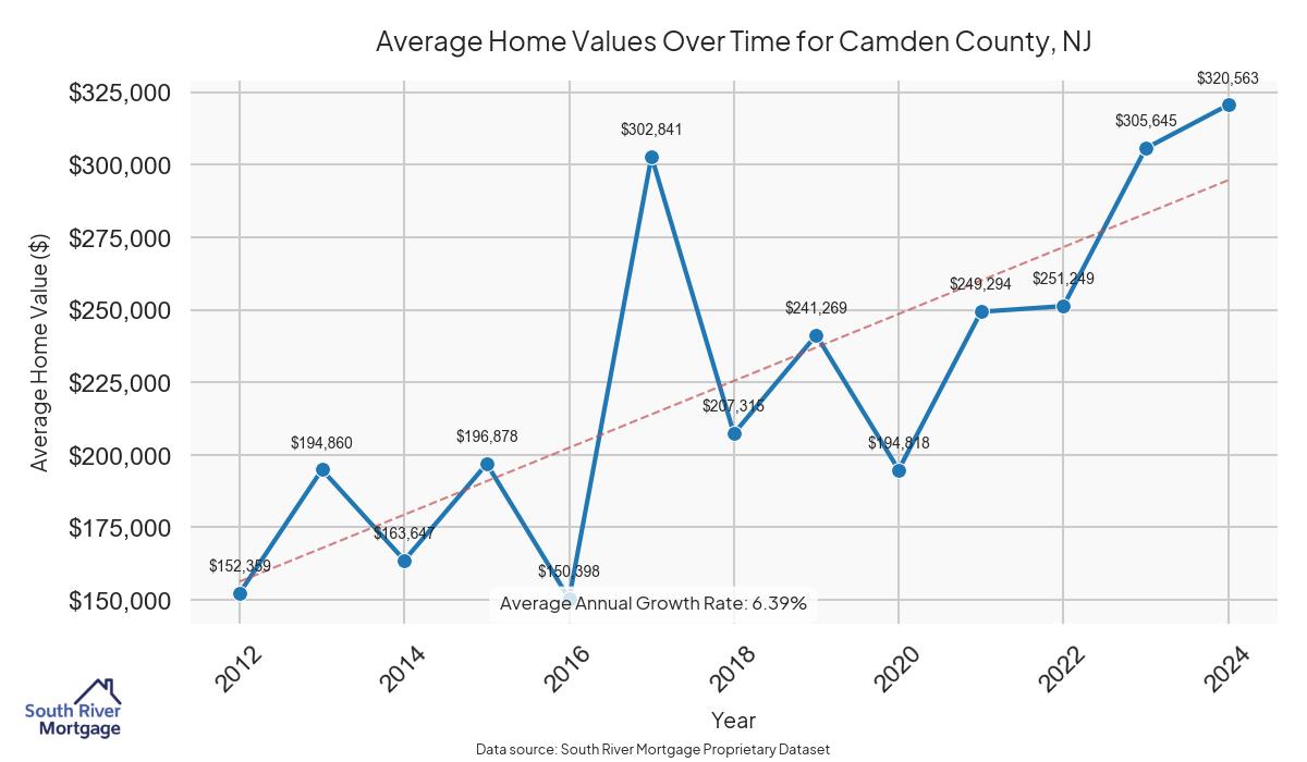 In 2024, there were 418 active reverse mortgage loans in Camden County, New Jersey. The average home value in Camden County is $385,235.49.