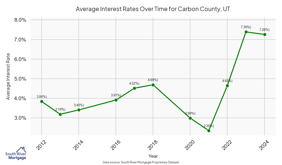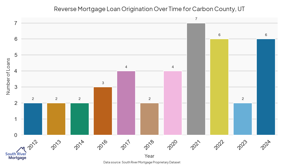 There are approximately 39 active reverse mortgage loans in Carbon County. The average interest rate in Carbon County is 7.4% for reverse mortgages. The average maximum claim amount (the lesser of the appraisal or lending limit), among reverse mortgage borrowers, in Carbon County was $568,333.33 in 2024.