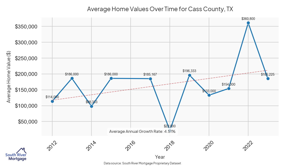 Cass County is a charming county located in the state of Texas, known for its rich history and scenic landscapes. With a population of approximately 30,464 residents, Cass County boasts a moderate climate ideal for outdoor activities and agricultural pursuits. The area is renowned for its tranquil rural atmosphere, making it a desirable destination for those seeking a peaceful retreat from city life. Historically, Cass County played a significant role in the development of Texas, particularly during the Civil War era. The county is home to numerous historical sites and landmarks that offer a glimpse into its past. For seniors looking to leverage their home equity, Cass County’s average home value of $242,604.46, paired with a property tax rate of $2,593.29 and an average interest rate of 4.32%, make it an attractive location for exploring options such as reverse mortgages. Residents can tap into the equity of their homes to supplement their income in retirement, providing financial stability and peace of mind.