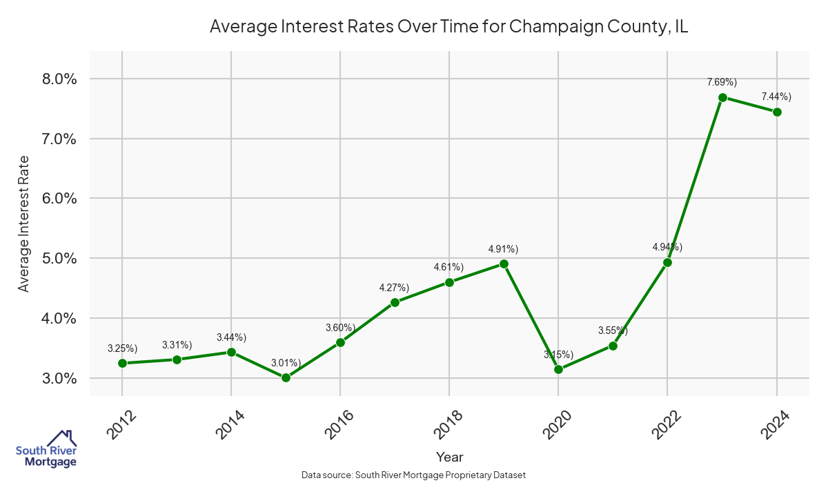 There are approximately 47 active reverse mortgage loans in Champaign County. The average interest rate in Champaign County is 8.16% for reverse mortgages. The average maximum claim amount (the lesser of the appraisal or lending limit), among reverse mortgage borrowers, in Champaign County was $212,500.00 in 2024.