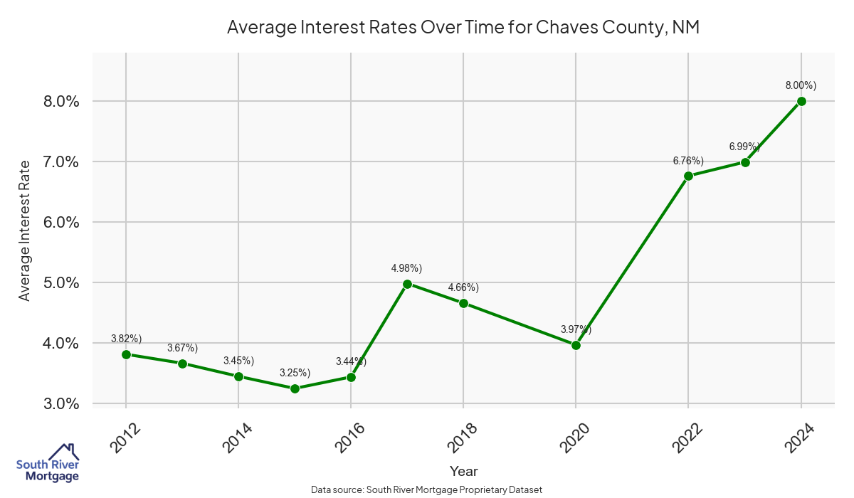 There are approximately 39 active reverse mortgage loans in Chaves County. The average interest rate in Chaves County is 6.39% for reverse mortgages. The average maximum claim amount (the lesser of the appraisal or lending limit), among reverse mortgage borrowers, in Chaves County was $235,000.00 in 2024.
