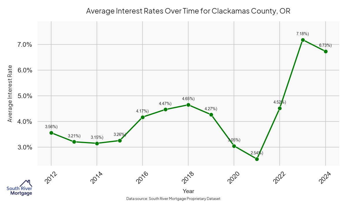 There are approximately 823 active reverse mortgage loans in Clackamas County. The average interest rate in Clackamas County is 7.5% for reverse mortgages. The average maximum claim amount (the lesser of the appraisal or lending limit), among reverse mortgage borrowers, in Clackamas County was $578,333.33 in 2024.