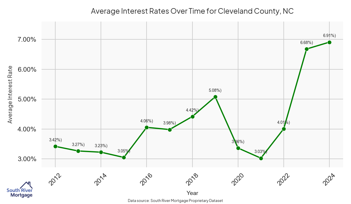 There are approximately 74 active reverse mortgage loans in Cleveland County. The average interest rate in Cleveland County is 6.55% for reverse mortgages. The average maximum claim amount (the lesser of the appraisal or lending limit), among reverse mortgage borrowers, in Cleveland County was $210,000.00 in 2024.