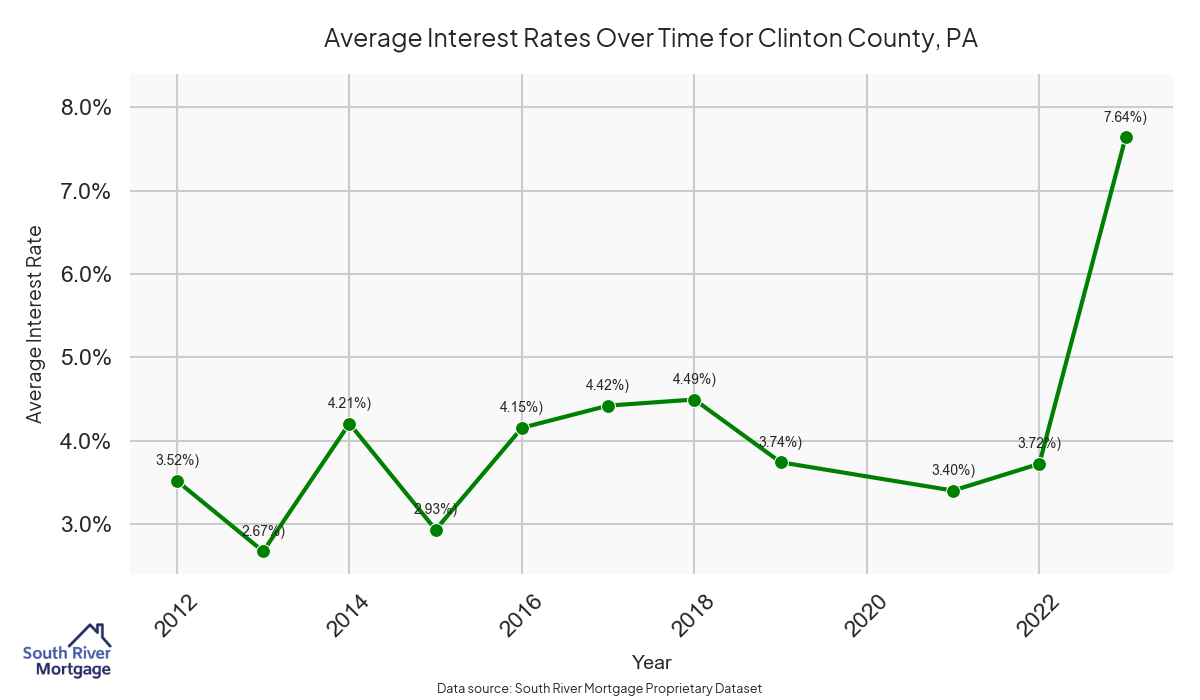 There are approximately 22 active reverse mortgage loans in Clinton County. The average interest rate in Clinton County is 7.64% for reverse mortgages. The average maximum claim amount (the lesser of the appraisal or lending limit), among reverse mortgage borrowers, in Clinton County was $445,000.00 in 2024.