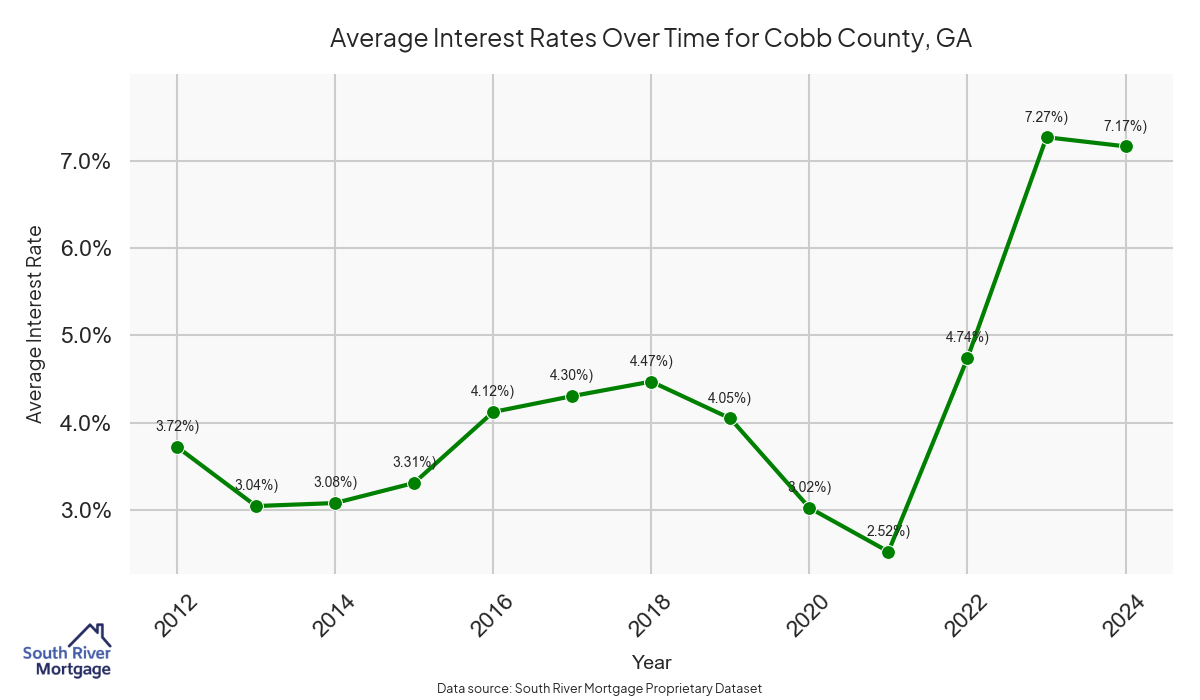 There are approximately 539 active reverse mortgage loans in Cobb County. The average interest rate in Cobb County is 7.38% for reverse mortgages. The average maximum claim amount (the lesser of the appraisal or lending limit), among reverse mortgage borrowers, in Cobb County was $470,326.09 in 2024.