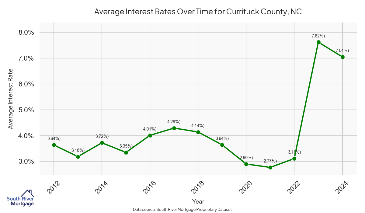 There are approximately 42 active reverse mortgage loans in Currituck County. The average interest rate in Currituck County is 7.5% for reverse mortgages. The average maximum claim amount (the lesser of the appraisal or lending limit), among reverse mortgage borrowers, in Currituck County was $597,857.14 in 2024.