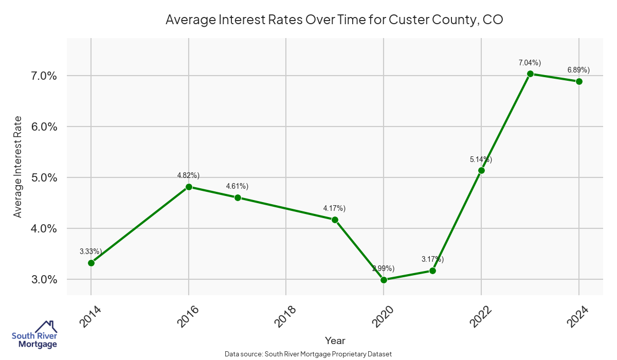 There are approximately 20 active reverse mortgage loans in Custer County. The average interest rate in Custer County is 7.04% for reverse mortgages. The average maximum claim amount (the lesser of the appraisal or lending limit), among reverse mortgage borrowers, in Custer County was $495,000.00 in 2024.
