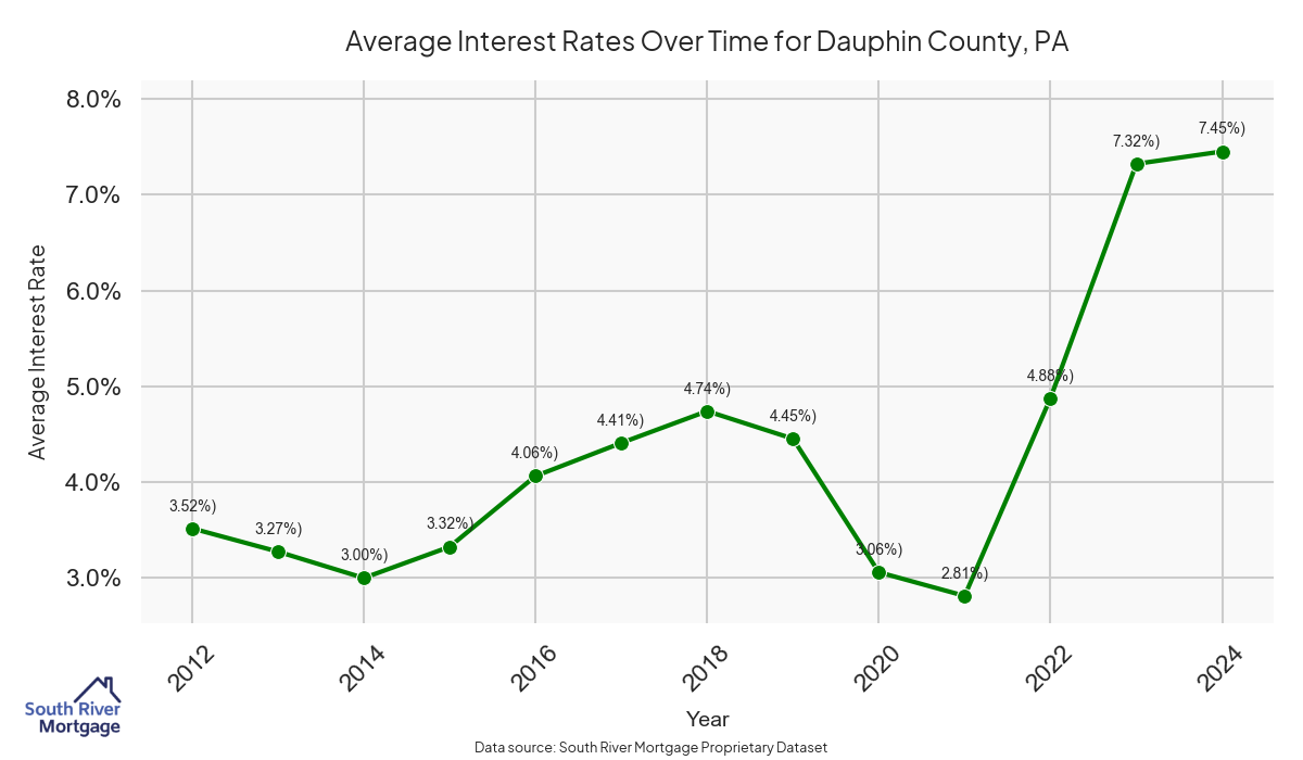 There are approximately 209 active reverse mortgage loans in Dauphin County. The average interest rate in Dauphin County is 7.33% for reverse mortgages. The average maximum claim amount (the lesser of the appraisal or lending limit), among reverse mortgage borrowers, in Dauphin County was $305,000.00 in 2024.
