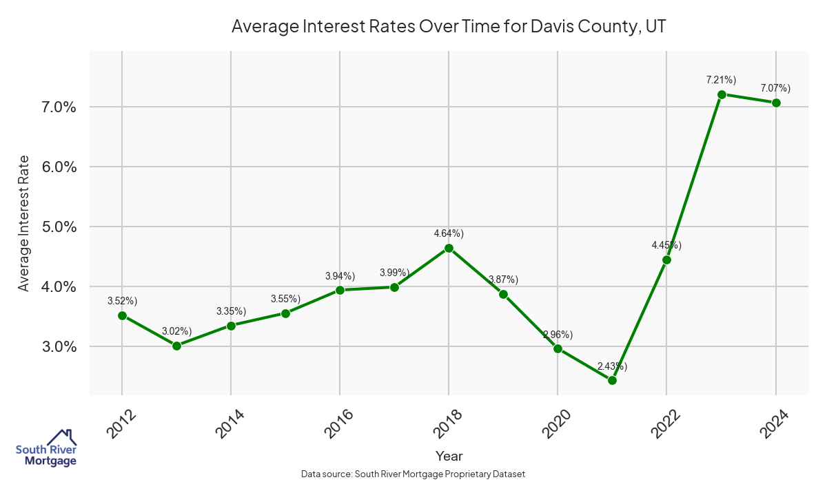 There are approximately 812 active reverse mortgage loans in Davis County. The average interest rate in Davis County is 7.32% for reverse mortgages. The average maximum claim amount (the lesser of the appraisal or lending limit), among reverse mortgage borrowers, in Davis County was $546,340.21 in 2024.