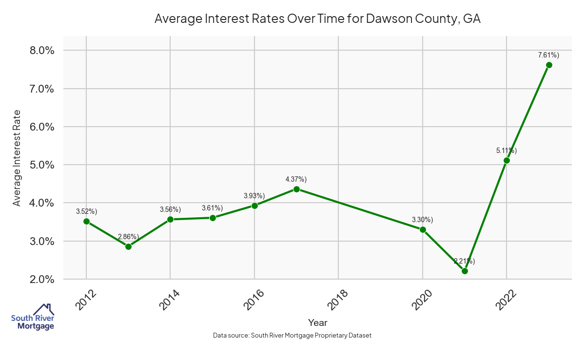 There are approximately 41 active reverse mortgage loans in Dawson County. The average interest rate in Dawson County is 7.42% for reverse mortgages. The average maximum claim amount (the lesser of the appraisal or lending limit), among reverse mortgage borrowers, in Dawson County was $534,000.00 in 2024.