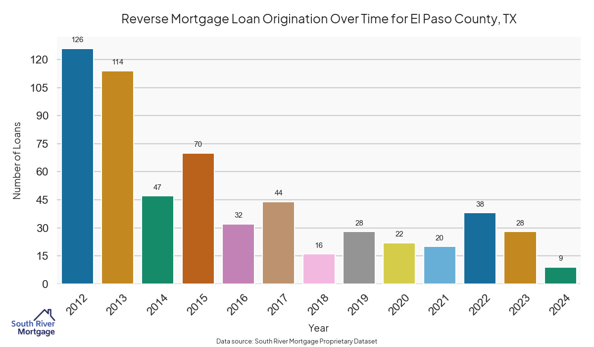 In 2024, there were 592 active reverse mortgage loans in El Paso County, Texas. The average home value in El Paso County is $256,466.93.