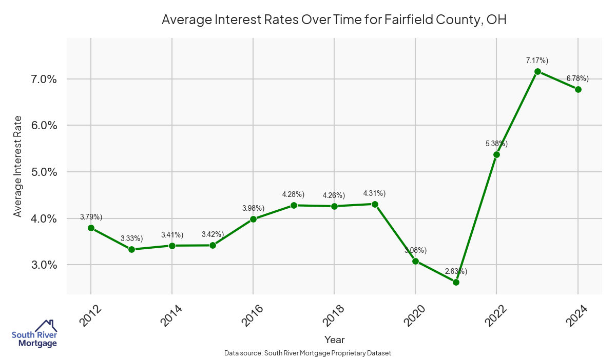 There are approximately 108 active reverse mortgage loans in Fairfield County. The average interest rate in Fairfield County is 7.53% for reverse mortgages. The average maximum claim amount (the lesser of the appraisal or lending limit), among reverse mortgage borrowers, in Fairfield County was $318,000.00 in 2024.