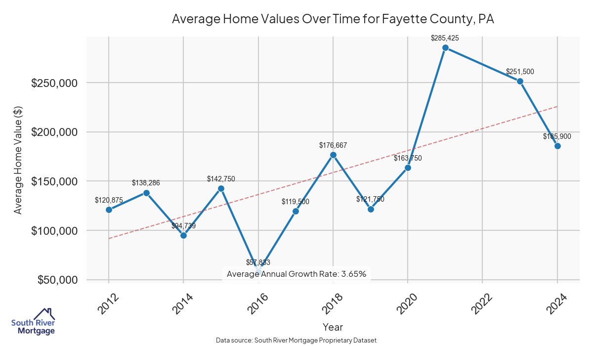 In 2024, there were 61 active reverse mortgage loans in Fayette County, Pennsylvania. The average home value in Fayette County is $239,536.10.