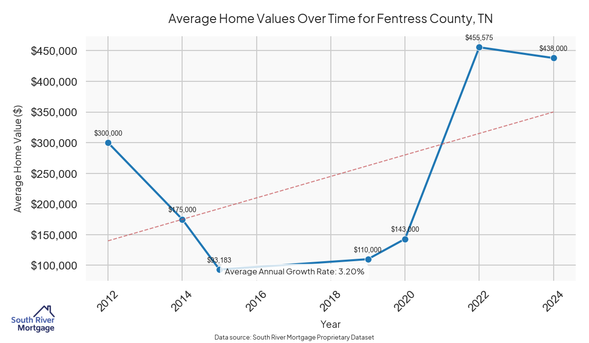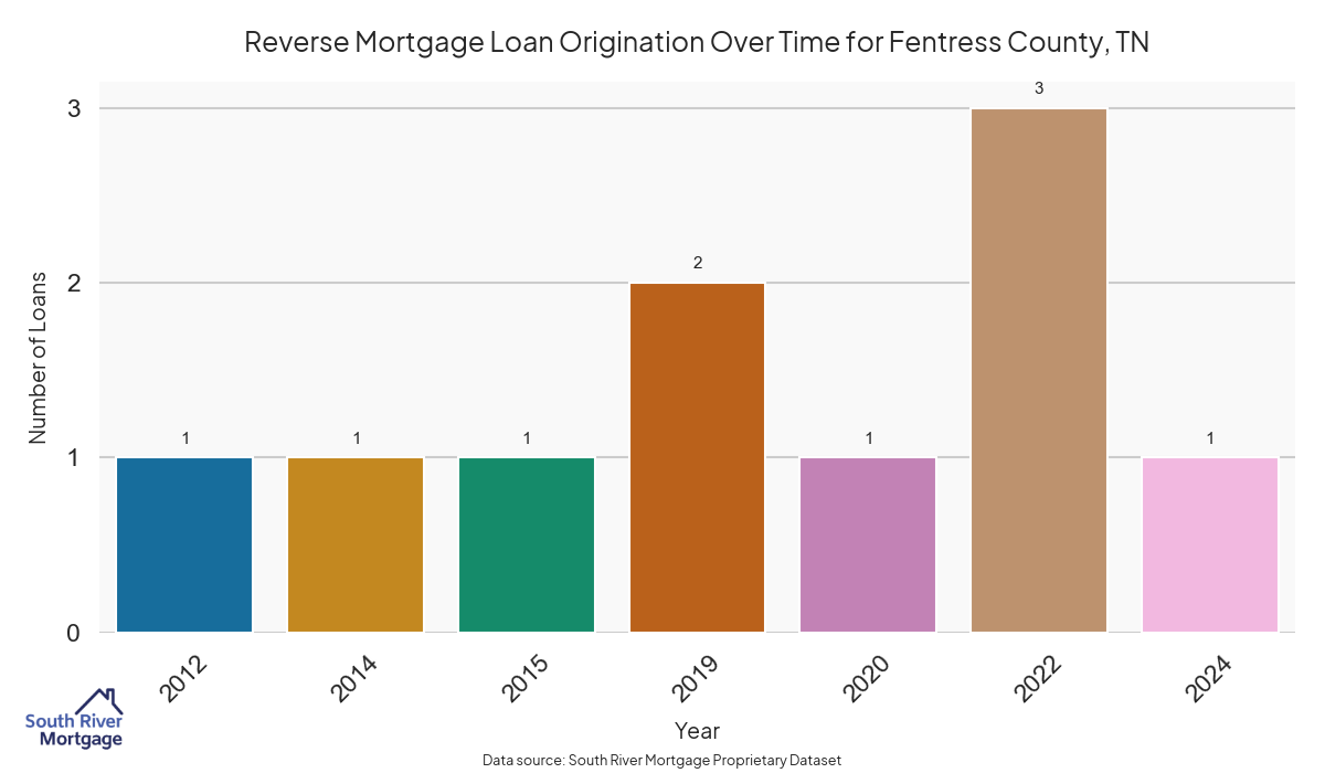 In 2024, there were 9 active reverse mortgage loans in Fentress County, Tennessee. The average home value in Fentress County is $239,137.44.