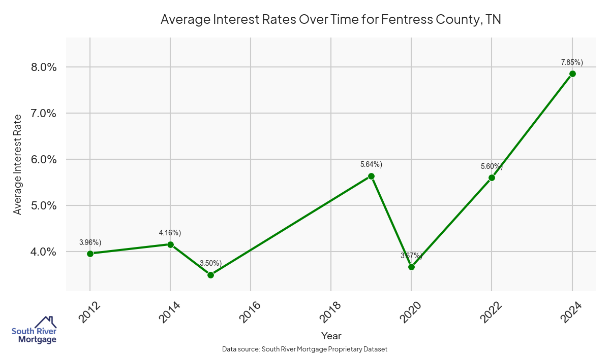 There are approximately 9 active reverse mortgage loans in Fentress County. The average interest rate in Fentress County is 7.82% for reverse mortgages. The average maximum claim amount (the lesser of the appraisal or lending limit), among reverse mortgage borrowers, in Fentress County was $335,000.00 in 2024.