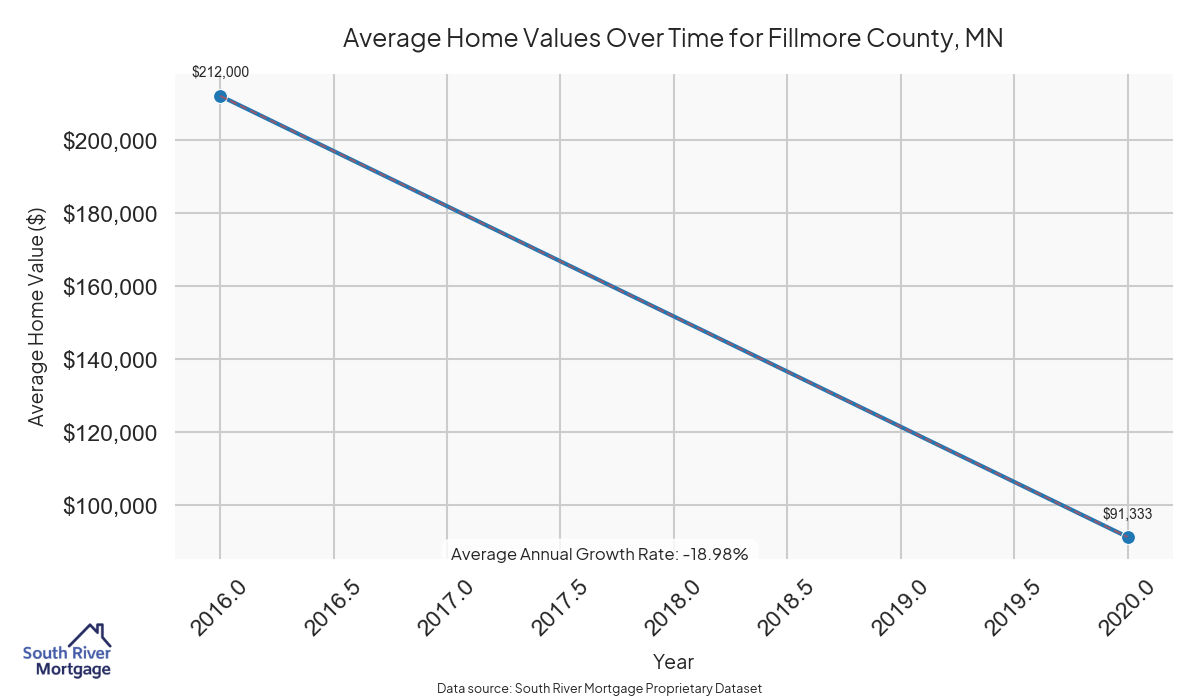 In 2024, there were 2 active reverse mortgage loans in Fillmore County, Minnesota. The average home value in Fillmore County is $266,675.50.