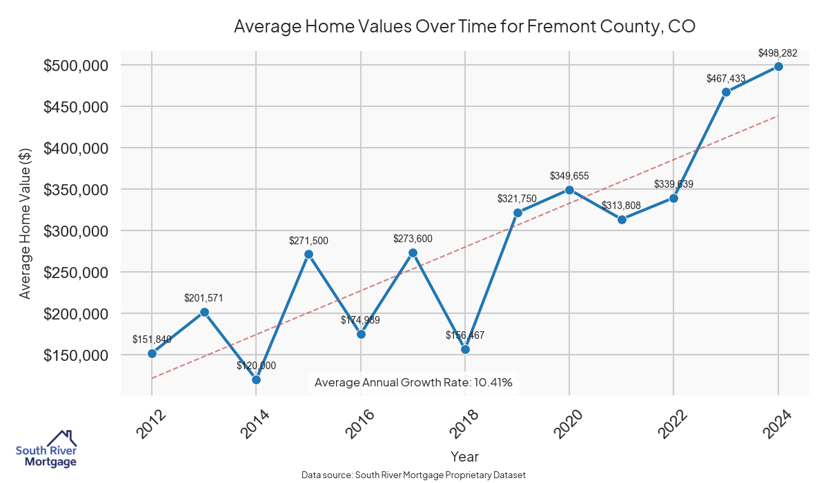 Fremont County, located in Colorado, is home to a diverse population and a variety of landscapes, from mountainous terrain to high desert plains. With a population of approximately 47,244 residents, the county enjoys a moderate climate with cold winters and warm summers. The area is known for its stunning natural beauty, with attractions such as the Royal Gorge Bridge and Park, the Arkansas River, and numerous hiking and outdoor recreational opportunities. Historically, Fremont County has played an important role in Colorado’s mining and railroad industries, with remnants of its past still visible today. The average home value in Fremont County stands at $409,144.47, with an average property tax of $1,284.29 and an average interest rate of 4.30%. For seniors looking to tap into their home equity, Fremont County offers opportunities for reverse mortgages, allowing homeowners aged 62 and older to convert a portion of their home’s value into cash to supplement their retirement income.