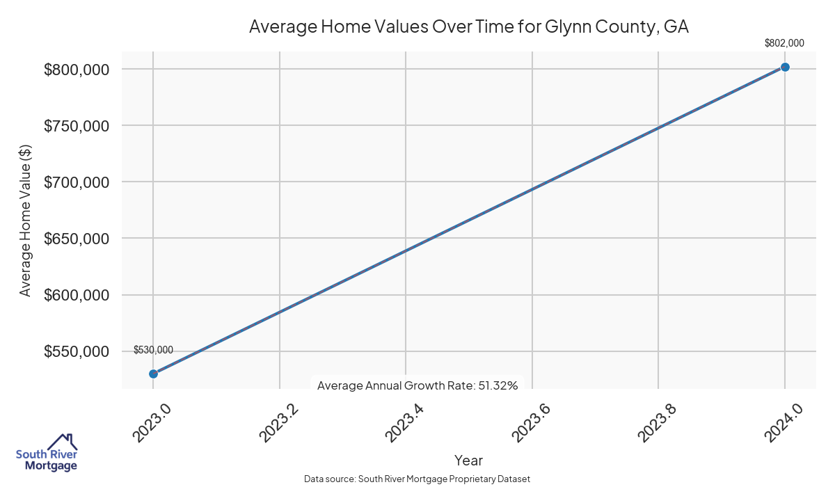 In 2024, there were 3 active reverse mortgage loans in Glynn County, Georgia. The average home value in Glynn County is $750,680.00.