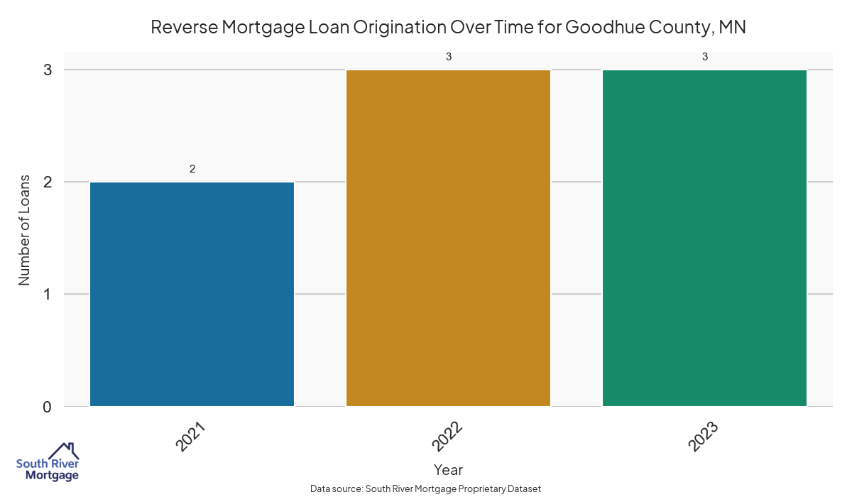 There are approximately 8 active reverse mortgage loans in Goodhue County. The average interest rate in Goodhue County is 7.03% for reverse mortgages. The average maximum claim amount (the lesser of the appraisal or lending limit), among reverse mortgage borrowers, in Goodhue County was $328,333.33 in 2024.