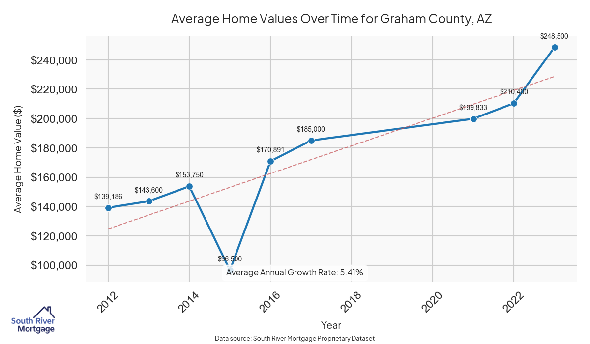 Located in the state of Arizona, Graham County is known for its diverse landscapes, including mountain ranges, deserts, and canyons. While the population of Graham County is not known, its climate typically features hot summers and mild winters, making it an attractive place for outdoor enthusiasts. The area is renowned for its outdoor recreational opportunities, with activities such as hiking, camping, and fishing drawing visitors year-round. Historically, Graham County has deep roots in mining and agriculture, with a rich cultural heritage shaped by the indigenous peoples of the region. For seniors looking to tap into their home equity, the average home value in Graham County is $164,057.61, with an average property tax of $804.99 and an average interest rate of 0.0394. Seniors in Graham County may consider a reverse mortgage as a financial option to access their home equity while remaining in their homes.