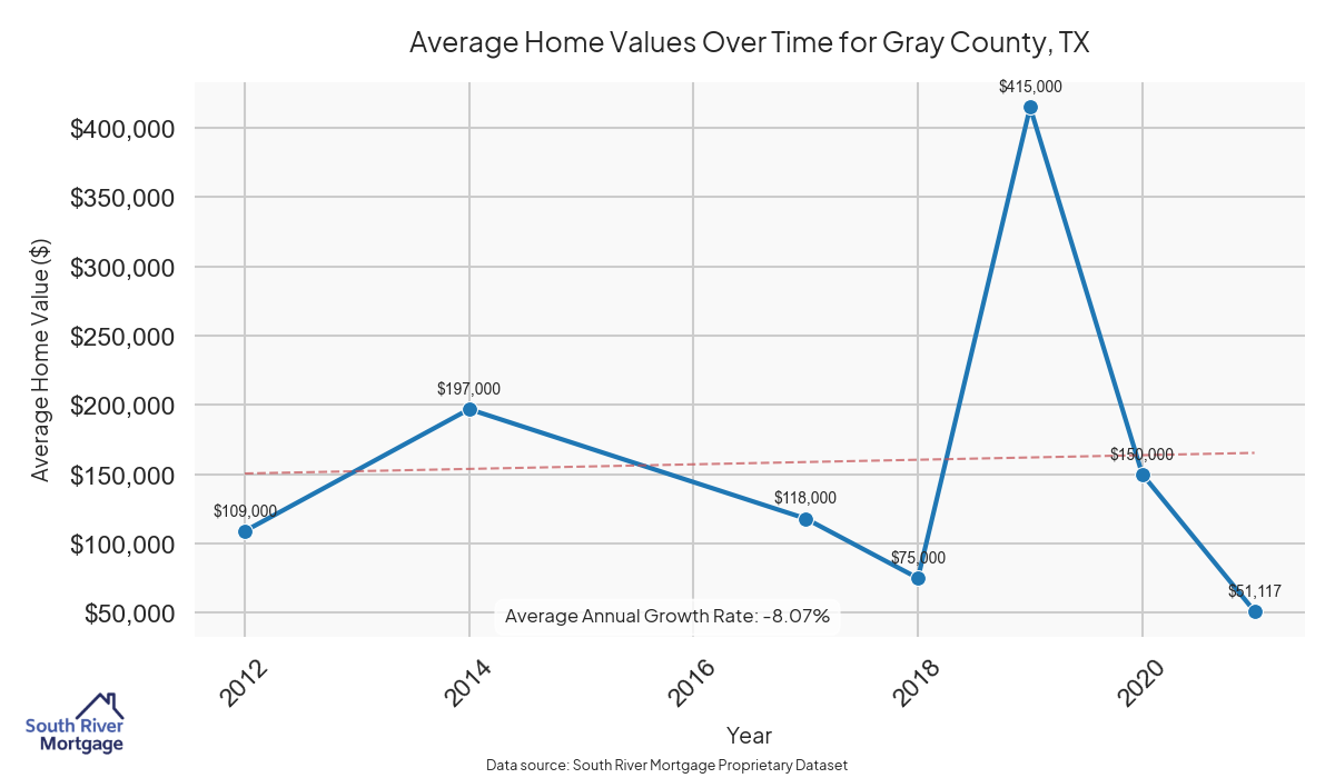 In 2024, there were 8 active reverse mortgage loans in Gray County, Texas. The average home value in Gray County is $210,497.13.