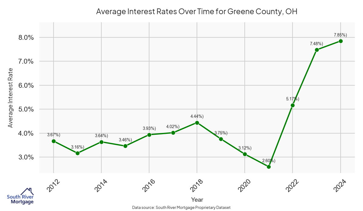 There are approximately 78 active reverse mortgage loans in Greene County. The average interest rate in Greene County is 7.66% for reverse mortgages. The average maximum claim amount (the lesser of the appraisal or lending limit), among reverse mortgage borrowers, in Greene County was $321,666.67 in 2024.