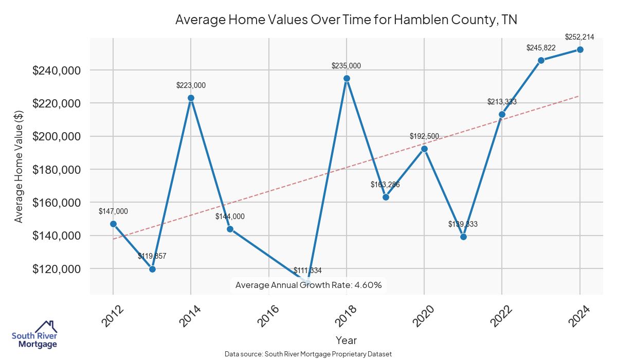 In 2024, there were 61 active reverse mortgage loans in Hamblen County, Tennessee. The average home value in Hamblen County is $231,386.61.