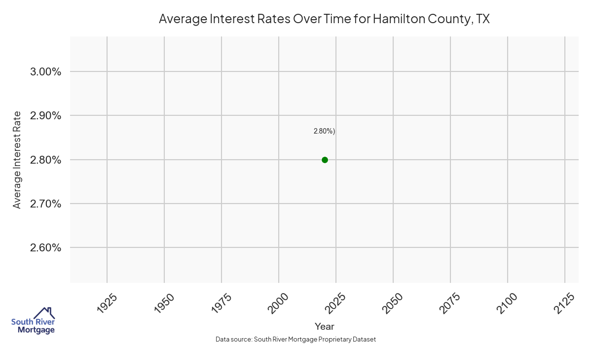 In 2024, there were 1 active reverse mortgage loans in Hamilton County, Texas. The average home value in Hamilton County is $185,697.00.