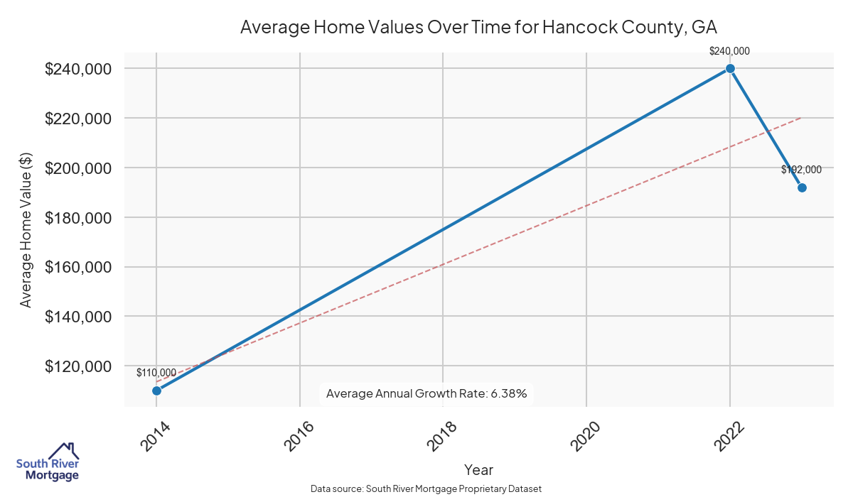 In 2024, there were 4 active reverse mortgage loans in Hancock County, Georgia. The average home value in Hancock County is $245,909.50.
