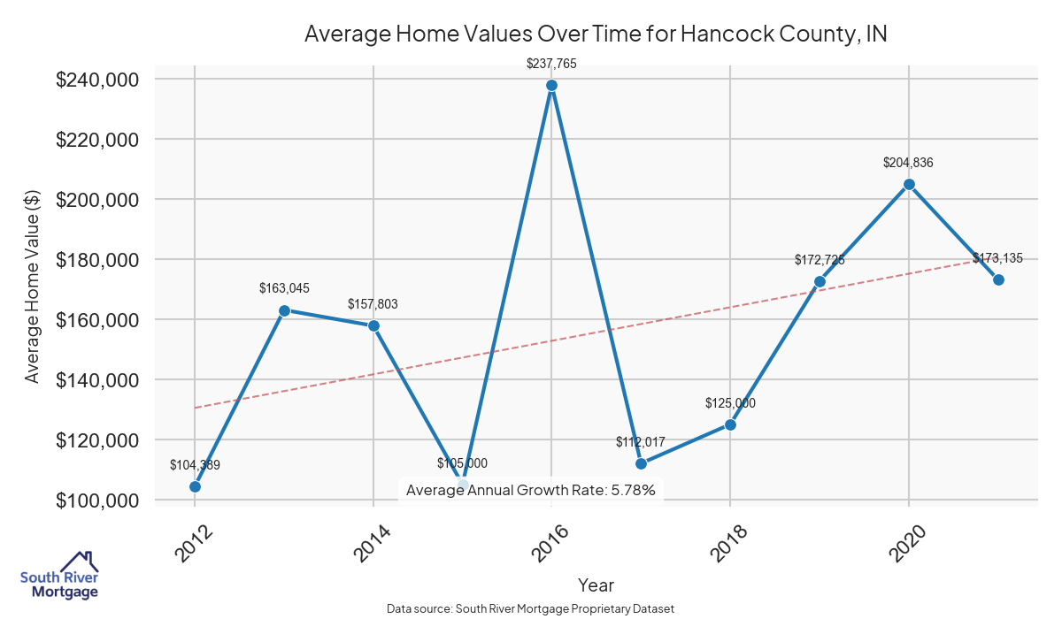 In 2024, there were 62 active reverse mortgage loans in Hancock County, Indiana. The average home value in Hancock County is $307,108.97.