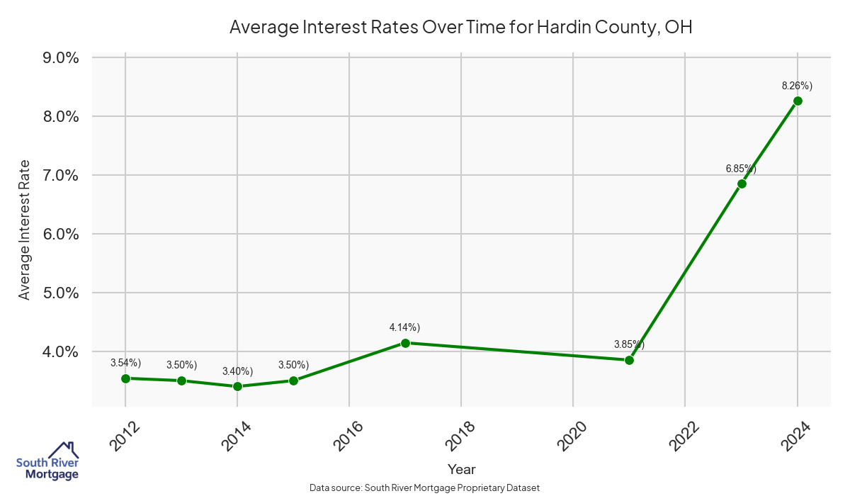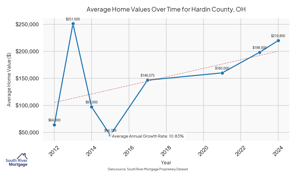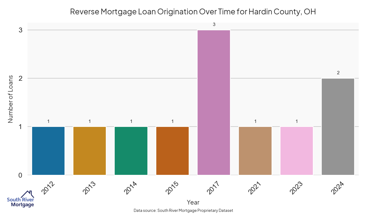In 2024, there were 10 active reverse mortgage loans in Hardin County, Ohio. The average home value in Hardin County is $193,702.50.