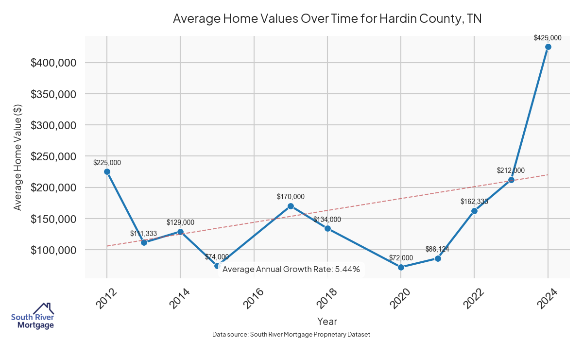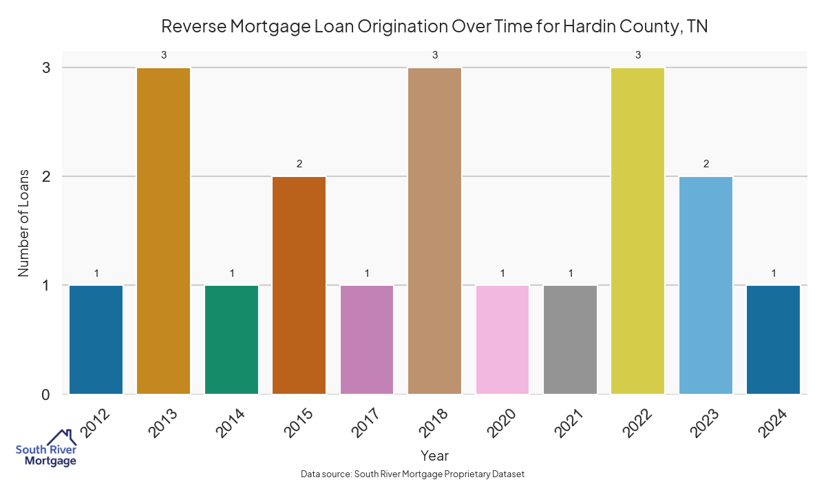In 2024, there were 19 active reverse mortgage loans in Hardin County, Tennessee. The average home value in Hardin County is $191,057.79.