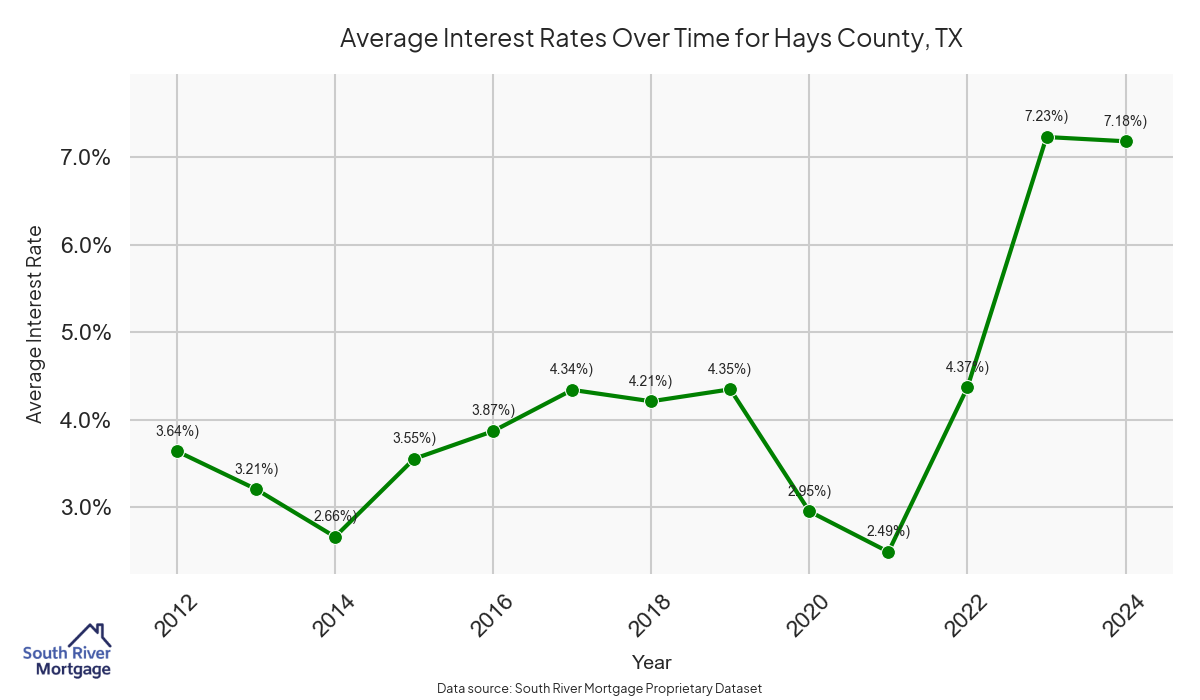 There are approximately 170 active reverse mortgage loans in Hays County. The average interest rate in Hays County is 7.9% for reverse mortgages. The average maximum claim amount (the lesser of the appraisal or lending limit), among reverse mortgage borrowers, in Hays County was $588,703.70 in 2024.