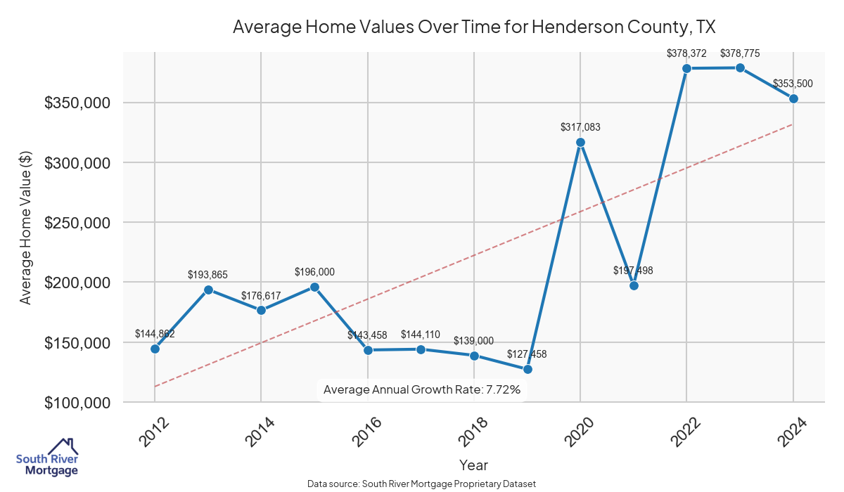 Henderson County, located in the state of Texas, is known for its picturesque landscapes and vibrant community. With a population of approximately 82,991 residents, the county boasts a diverse mix of urban and rural areas, offering a high quality of life for its inhabitants. The area is renowned for its mild climate, making it an attractive destination for those seeking a comfortable living environment. Historically, Henderson County has played a significant role in the development of Texas, with a rich heritage that dates back to the early days of the state. The county is home to a number of historical sites and landmarks, including the Henderson County Courthouse and the Athens Scenic Loop, providing a glimpse into the past of this storied region. For seniors looking to leverage their home equity in retirement, Henderson County’s average home value of $239,322.49, combined with an average property tax rate of $1,970.08 and an average interest rate of 4.11%, make it an appealing location to consider a reverse mortgage as a financial option.