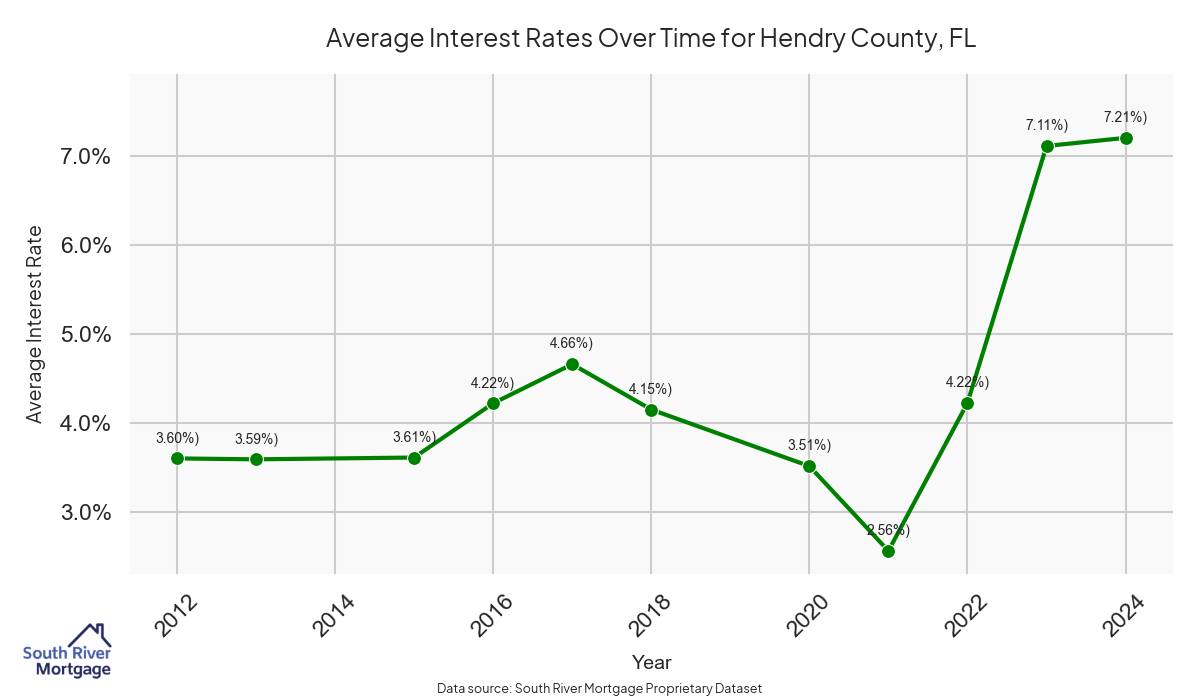 There are approximately 26 active reverse mortgage loans in Hendry County. The average interest rate in Hendry County is 7.17% for reverse mortgages. The average maximum claim amount (the lesser of the appraisal or lending limit), among reverse mortgage borrowers, in Hendry County was $353,000.00 in 2024.