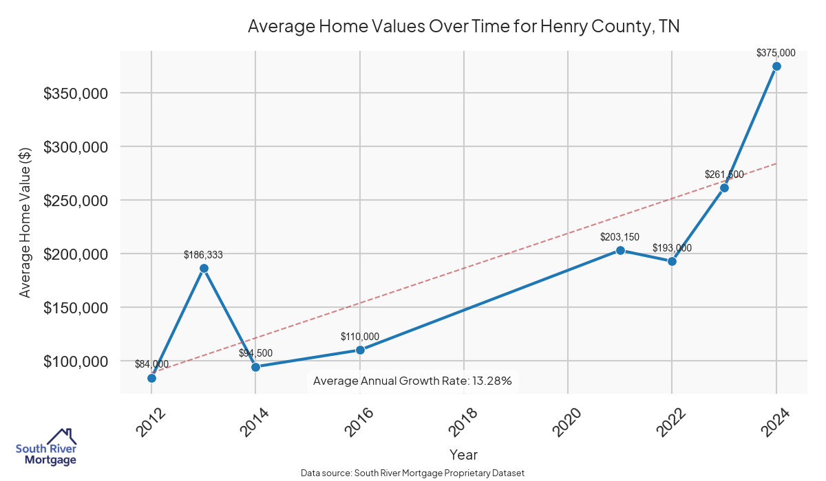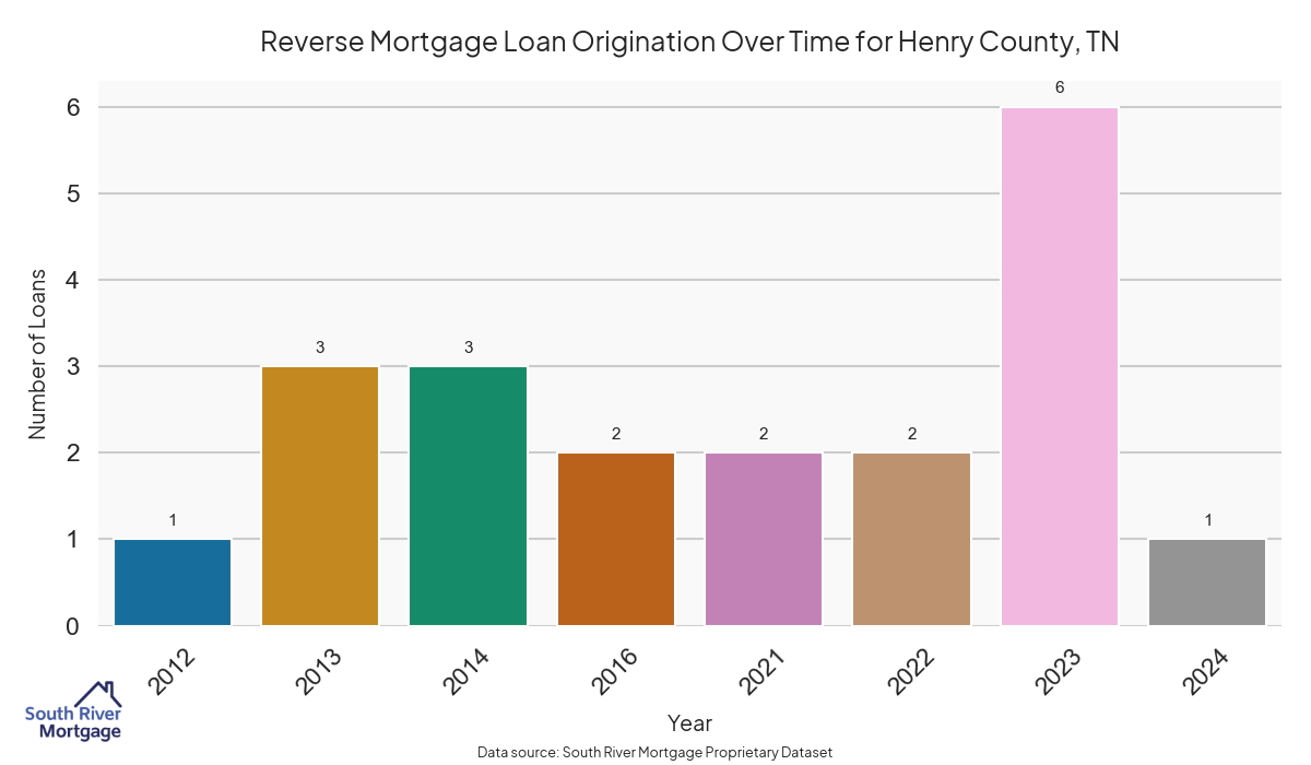 In 2024, there were 20 active reverse mortgage loans in Henry County, Tennessee. The average home value in Henry County is $226,561.50.