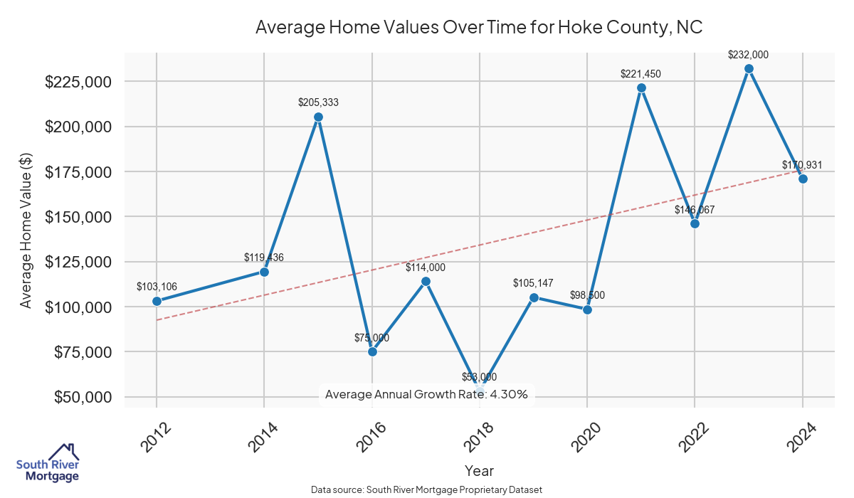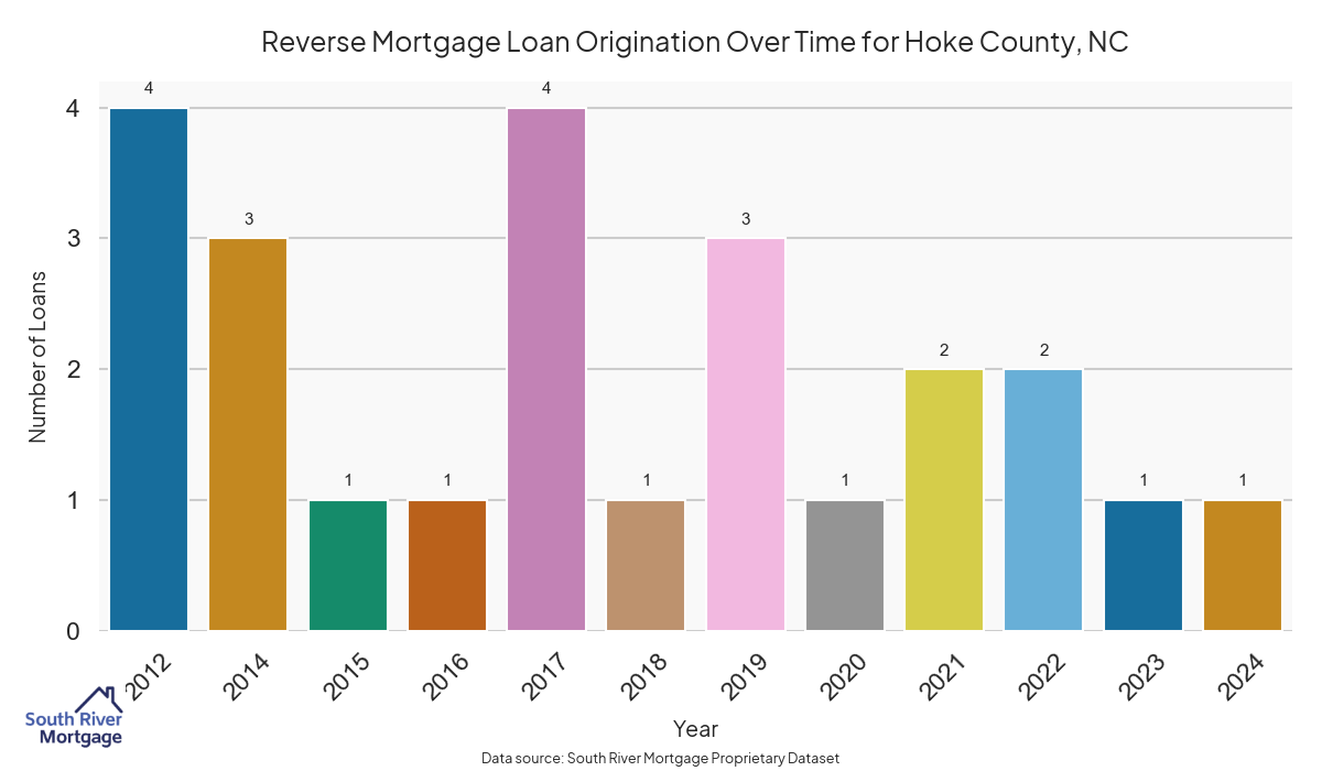 In 2024, there were 24 active reverse mortgage loans in Hoke County, North Carolina. The average home value in Hoke County is $267,840.13.