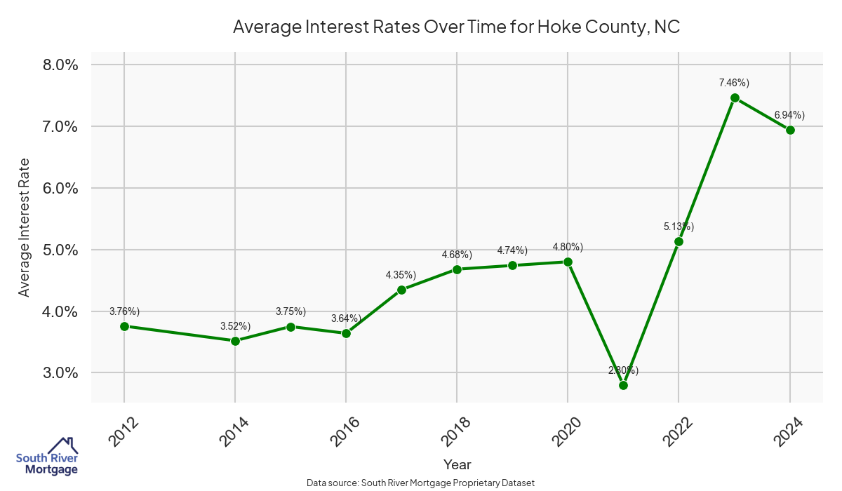 There are approximately 24 active reverse mortgage loans in Hoke County. The average interest rate in Hoke County is 7.46% for reverse mortgages. The average maximum claim amount (the lesser of the appraisal or lending limit), among reverse mortgage borrowers, in Hoke County was $235,000.00 in 2024.