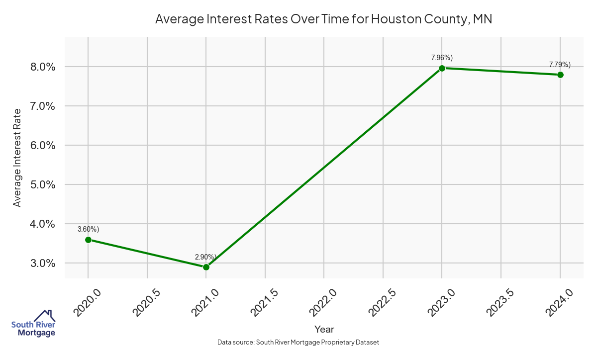 There are approximately 5 active reverse mortgage loans in Houston County. The average interest rate in Houston County is 8.22% for reverse mortgages. The average maximum claim amount (the lesser of the appraisal or lending limit), among reverse mortgage borrowers, in Houston County was $225,000.00 in 2024.